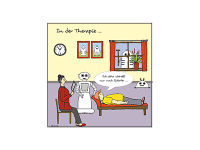 Cartoons mit Tieren, Menschen und Roboter